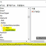 HKEY_CLASSES_ROOT\Directory\Background\shellex\ContextMenuHandlers 하위의 New,WorkFolders를 제외하고 삭제 출처 : https://www.youtube.com/watch?v=WZn7qOMQzFg
