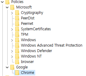 LKEY_LOCAL_MACHINE\SOFTWARE 아래에 Microsoft\browser, Microsoft>Edge,Google\Chrome에 RSAKeyUsageForLocalAnchorsEnabled REG_DWORD = 0를 입력해 준다.