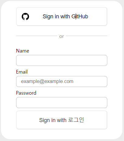 [Sign In]을 클릭, 놀랍게도 다음과 같이 화면이 뜬다. 경로를 보니 /api/auth/signin으로 변경되어 있다.