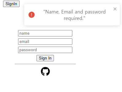 throw new Error('Name, Email and password required.');