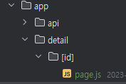 parameter를 받는 web page는 /detail/[paramter] 형태로 디렉토리를 생성하고 그 안에 page.js를 생성한다(dynamic segment).