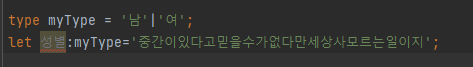 심지어 [ 그림 3 ]처럼 type(literal type)을 선언할 수 도 있다.